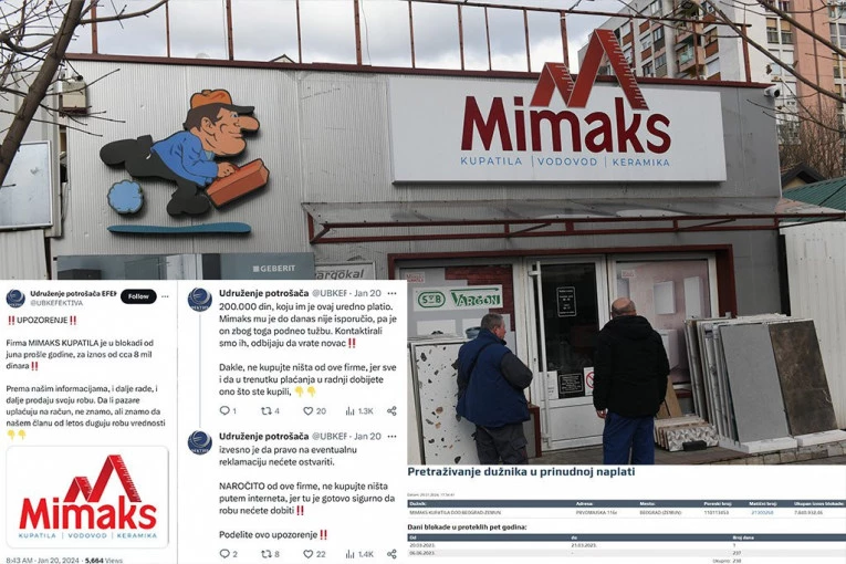 "MIMAKS KUPATILA" 240 DANA U BLOKADI! EFEKTIVA: UZELI ČOVEKU 200.000 DINARA, A ROBU NISU ISPORUČILI! Poznata zemunska firma dužna čak 7,8 miliona dinara, ali i dalje radi
