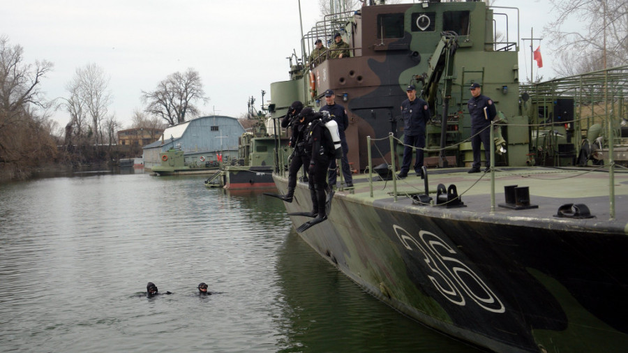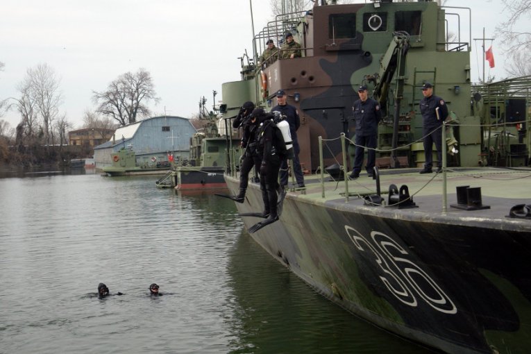 Pripadnici ronilačke jedinice iz sastava Rečne flotile izvode redovnu obuku za realizaciju protivdiverzantskog obezbeđenja brodova u uređenom rejonu baziranja, prenosi Ministarstvo odbrane.