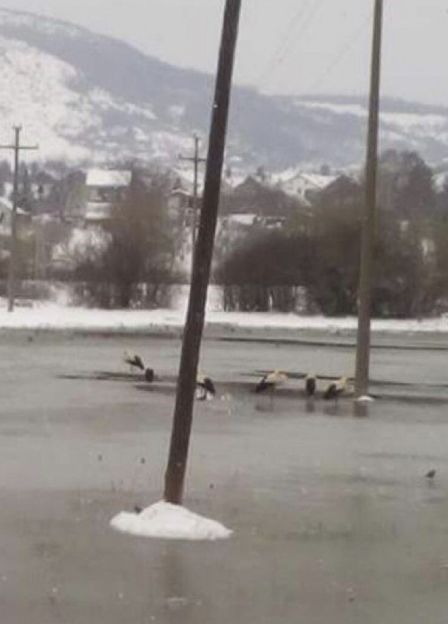 Piroćanac Slobodan Pejčić, bio je pre nekoliko dana iznenadjen kada je u blizini grada na Nišavi ugledao jato roda u zaledjenoj bari.