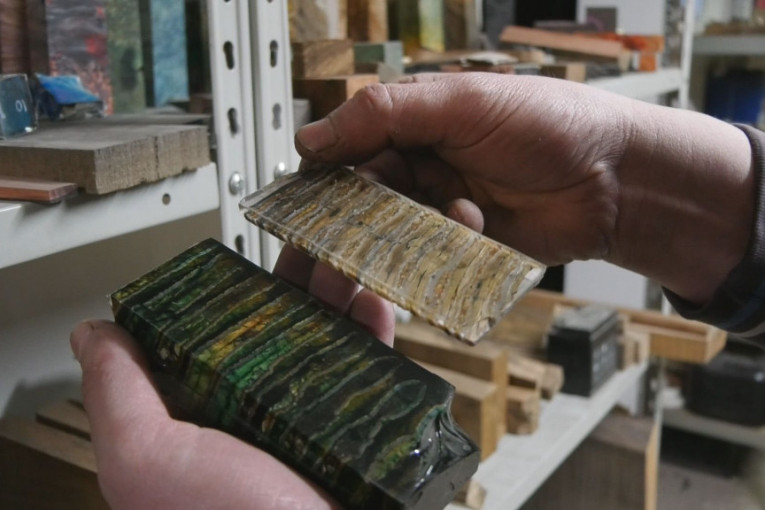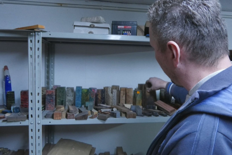 - Naviše su traženi noževi za lov od jelenskih rogova, ili drveni za kuhinju. Medjutim, ono što je poslednjih meseci trend, jeste pravljenje noževa od čelika i drški od zuba mamuta, koje nalazimo u iskopima šodera ili u blizini Dunava. Nakon obrade, njegovi zubi idu u epoksin smolu, kako bi drška bila što otpornija i možemo je posle bojiti raznim bojama - rekao je Saša.