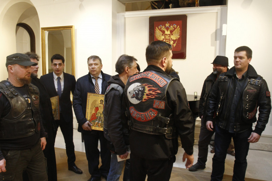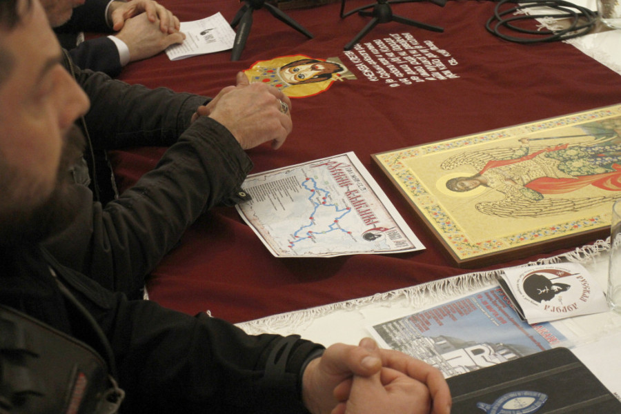 "Noćni vukovi" su poznati po prijateljstvu sa ruskim predsednikom Vladimirom Putinom, a na hodočašće putuju pod zastavom na kojoj je na srpskom ispisana pesma o srpskom caru Lazaru "Kneževa kletva".