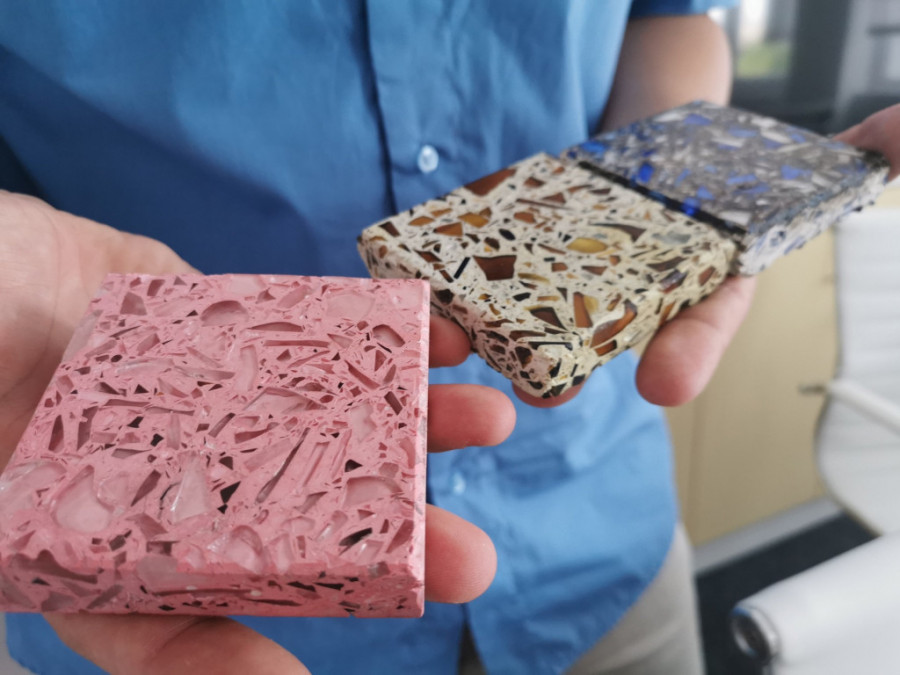 Inspirisan ekološkim vrednostima, par je inicirao jedinstveni projekat – proizvodnju građevinskih ploča od recikliranog stakla, koje predstavljaju alternativu tradicionalnim materijalima poput mermera, drveta ili granita u građevinarstvu.
