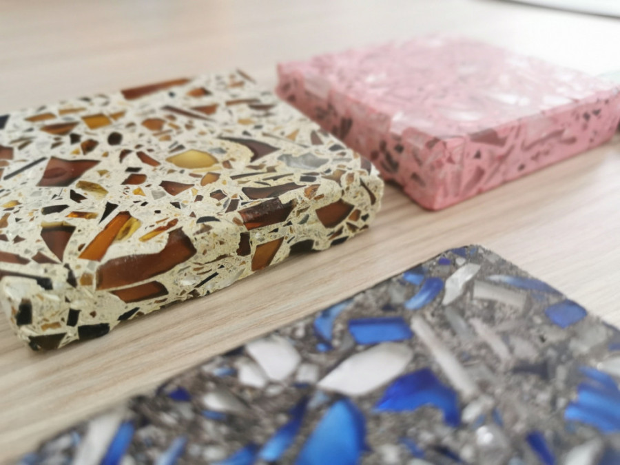 Projekt eko-ploča, koji se izdvaja svojim specifičnim dizajnom, bazira se na korišćenju do 70% recikliranog staklenog otpada. Staklo se prvo melje, a zatim meša s cementom, da bi se nakon sušenja, pečenja i poliranja dobile gotove ploče. Ova inovacija ne samo da predstavlja ekološki prihvatljivu alternativu u građevinskoj industriji, već ima i duboki ekološki uticaj na lokalnu zajednicu, smanjujući količinu staklenog otpada koji završava na deponijama, od kojih se trenutno samo mali deo reciklira.