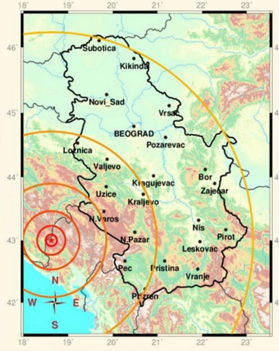 Epicentar potresa lociran je u blizini Nikšića. Informacije dostupne na zvaničnom sajtu Seizmološkog zavoda Srbije ukazuju na to da je zemljotres registrovan širom Srbije.