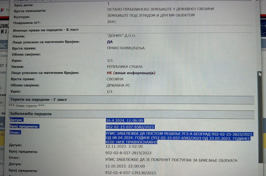 - Investitor firma "Donić" sad nema zemljište u svojini, ali ni objekte koje je kupio s firmom iz stečaja jer ih je porušio, a da nije obezbedio pravni osnov za gradnju. Tržni centar se sada, tačnije rečeno, zida na zemljištu države Srbije - kaže naš izvor.