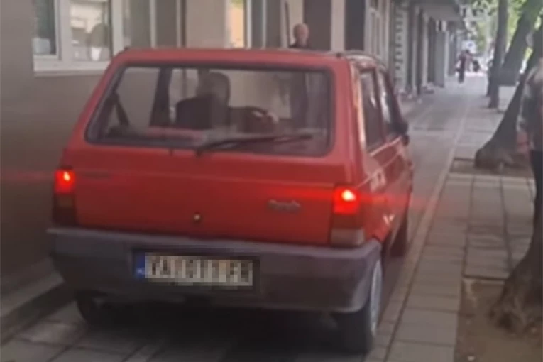 Neverovatna scena zabeležena je u Valjevu, kada je vozač automobila "fijat panda" uspeo da se provuče između drvoreda i zgrada i vozi trotoarom.