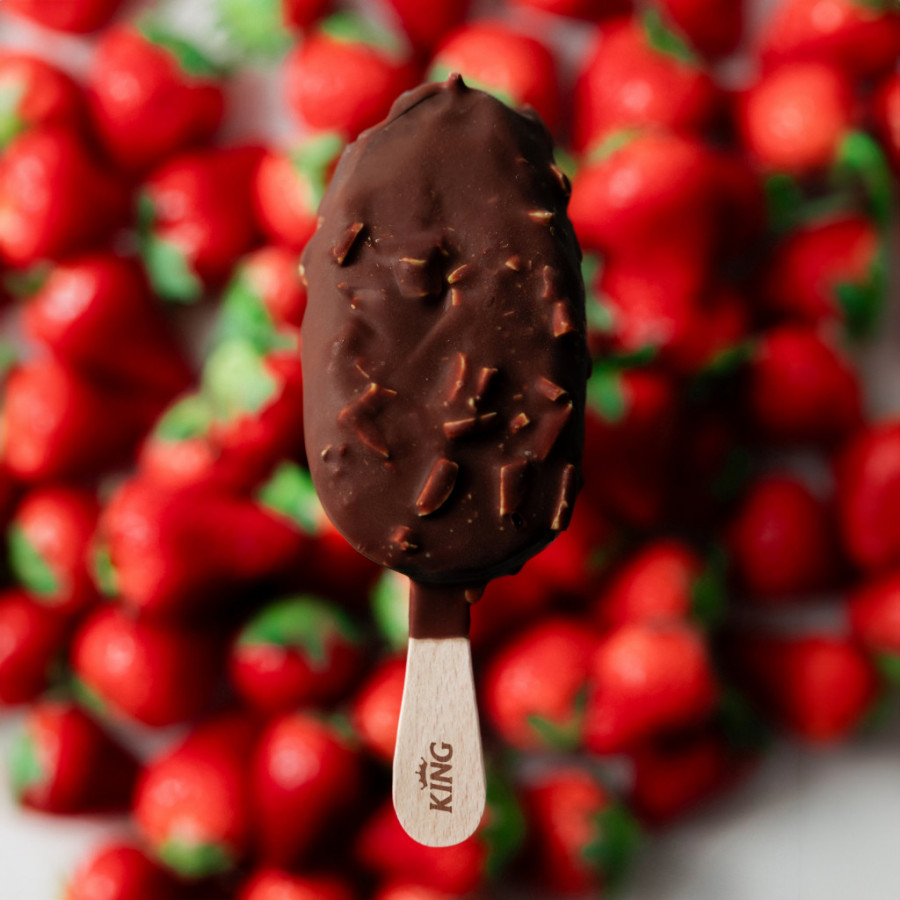 King Supreme donosi savršen balans slane karamele, jednog od najpoželjnijih ukusa na svetu. Sladoled je obogaćen mlečnom karamelom, umotan u ukusan preliv od slane karamele, belu čokoladu s ukusom karamele i hrskave komadiće keksa, stvarajući neodoljivu kombinaciju ukusa i tekstura. Za ljubitelje voćnih ukusa, uskoro u zamrzivače dolazi i King Seduction. Hrskavi spoljašnji sloj prepoznatljive King čokolade s komadićima badema, sladoled s ukusom panakote, uz središnje punjenje jagode čine King Seduction savršenim izborom za sve ljubitelje kremastih tekstura i osvežavajućih ukusa.