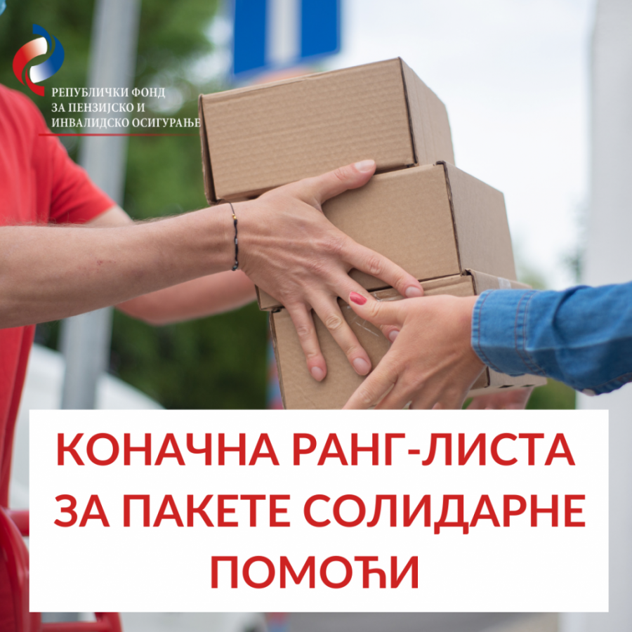Konačne rang-liste za dodelu paketa solidarne pomoći najugroženijim korisnicima penzija objavljene su na oglasnim tablama udruženja i odbora korisnika penzija i filijala Fonda PIO, navodi se u zvaničnom saopštenju.