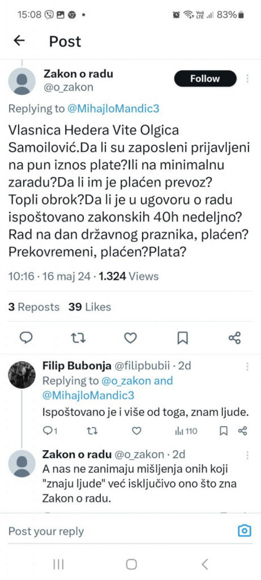 Vlasnica "Hedera vite" Olgica Samoilović izvinila se zbog svoje izjave, ali malo ko veruje da je izvinjenje bilo iskreno