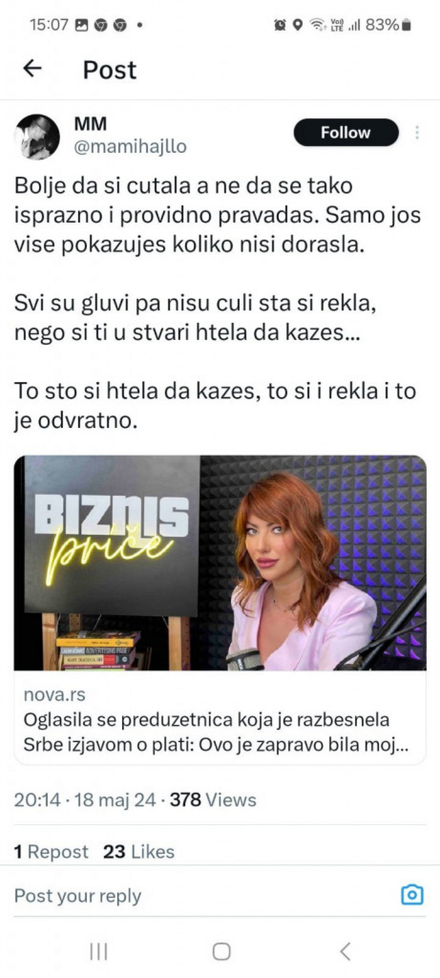 Nemojte više davati prostora u emisijama i štampi ovoj ženi.