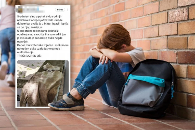 - Srednjem sinu u petak, ekipa od njih nekoliko iz odeljenja/razreda ukradu duksericu, uvaljaju je u blato, izgazi i isp**a se po njoj, sakrije je. U subotu na rođendanu deteta iz odeljenja mu saopšte šta su uradili (on je mislio da je zaboravio duks negde napolju). Danas mu vrate tako izgažen i mokraćom natopljen duks uz dodatne uvrede i maltertiranje. Treći razred osnovne škole. Moj sin je dobro, ali ovakve stvari ostavljaju dublje posledice koje se ne mogu uočiti odmah - napisao je zapanjen otac na društvenoj mreži "X".