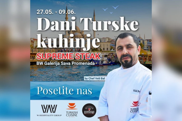 Restoran „Steak Supreme” će narednih dana, od 27. maja do 9. juna, biti domaćin turskim gastro majstorima, koji za goste restorana pripremaju probrane specijalitete iz njihove bogate kulinarske tradicije. Manifestacija se organizuje na inicijativu Ambasade Republike Turske u Beogradu i održava se već tri godine zaredom. Ove godine, izabrali su da se upravo u meni ovog restorana uvrste neka od najkvalitetnijih jela koja spajaju Istok i Zapad, odnosno Aziju i Evropu, sa naglaskom na izmirske specijalitete. Pored Beograda, u ovu globalnu akciju promocije turske gastronomske ponude uključeni su brojni gradovi širom sveta.