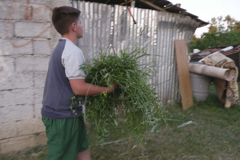 - Sve znam da radim i nije mi teško. Kosim livade, nosim travu, hranim životinje. Prodao sam jednu krmaču i kupio žensko tele, koje se zove Ruža. Želim jednog dana da imam svoju kuću, punu štalu, ovce, krave i traktor - kaže Radoje.