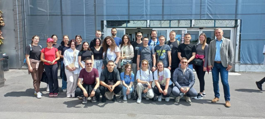 Studenti sa profesorom dr Milošem Zrnićem i rukovodiocem odseka Visoka hotelijerska škola, Akademija strukovnih studija, dr Sašom Mašićem