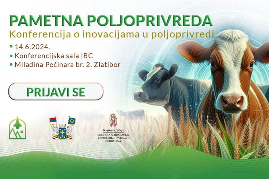 Konferencija pod nazivom “Pametna poljoprivreda” biće održana 14. juna 2024. godine sa početkom u 09:30 časova u konferencijskoj sali Inovacionog biznis centra Zlatibor na Zlatiboru i otvorena je za sve zainteresovane. Konferenciju organizuje Inovacioni biznis centar Zlatibor pod pokroviteljstvom Ministarstva nauke, inovacija i tehnološkog razvoja Republike Srbije i opštine Čajetina, a u saradnji sa Naučno-tehnološkim parkom iz Čačka.