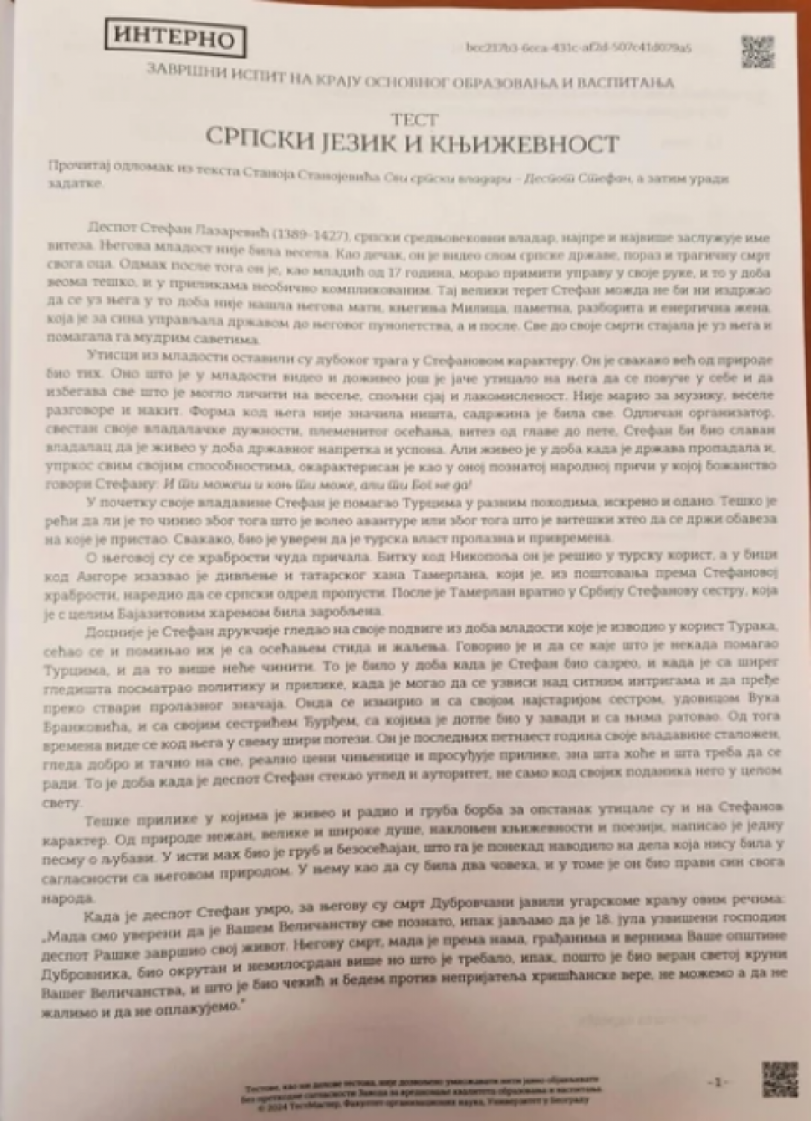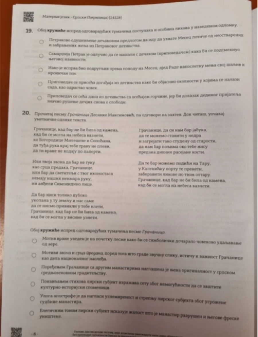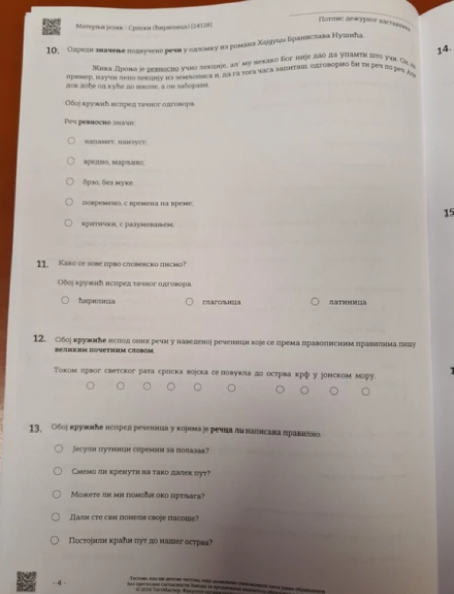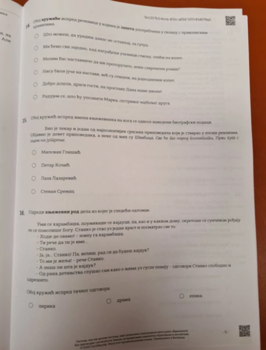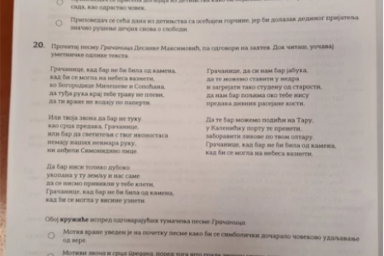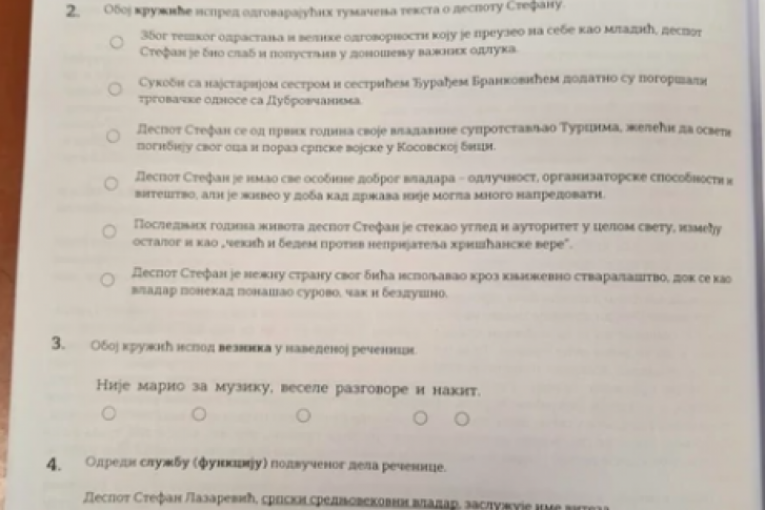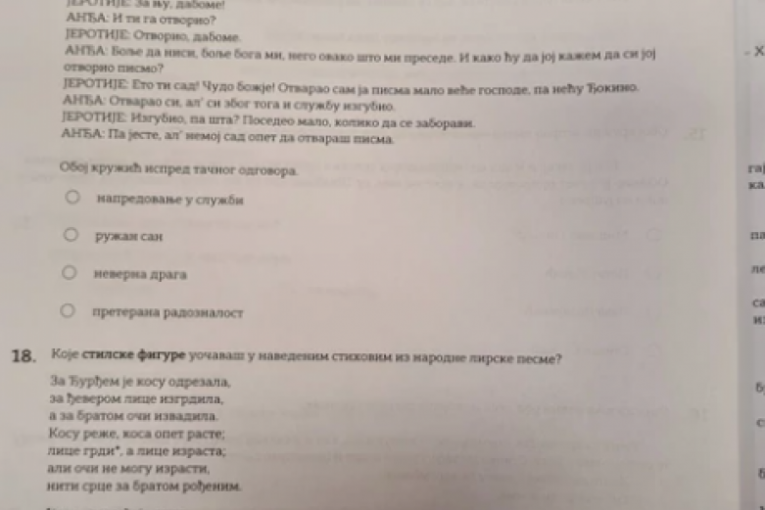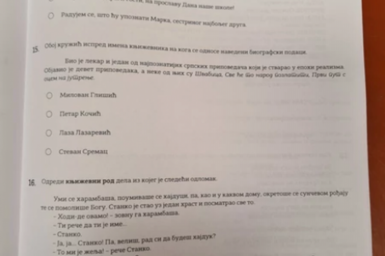 OVAKO JE IZGLEDAO TEST IZ SRPSKOG JEZIKA ZA MALE MATURANTE: Probajte i sami da rešite i proverite svoje znanje! (FOTO)