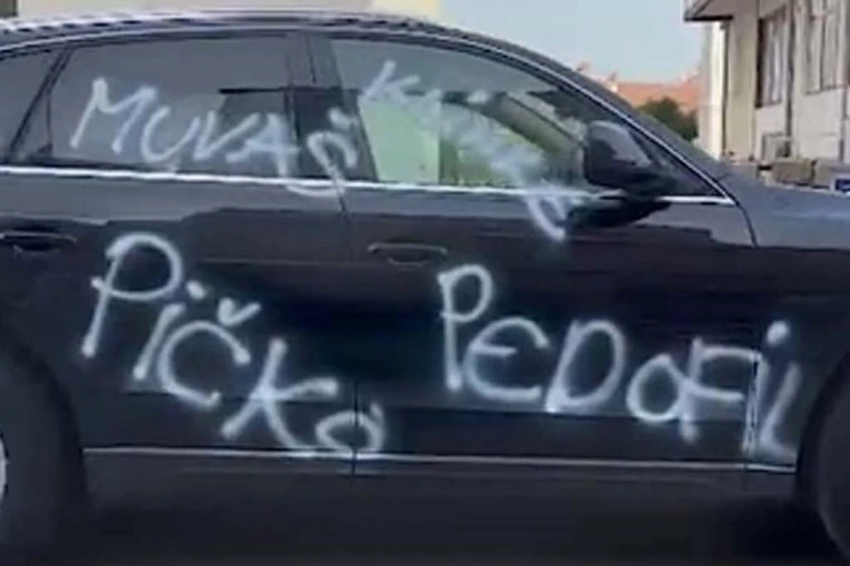 Na automobilu stoji poruka: "Muvaš klinke", "pedofil", kao i "pi***".
