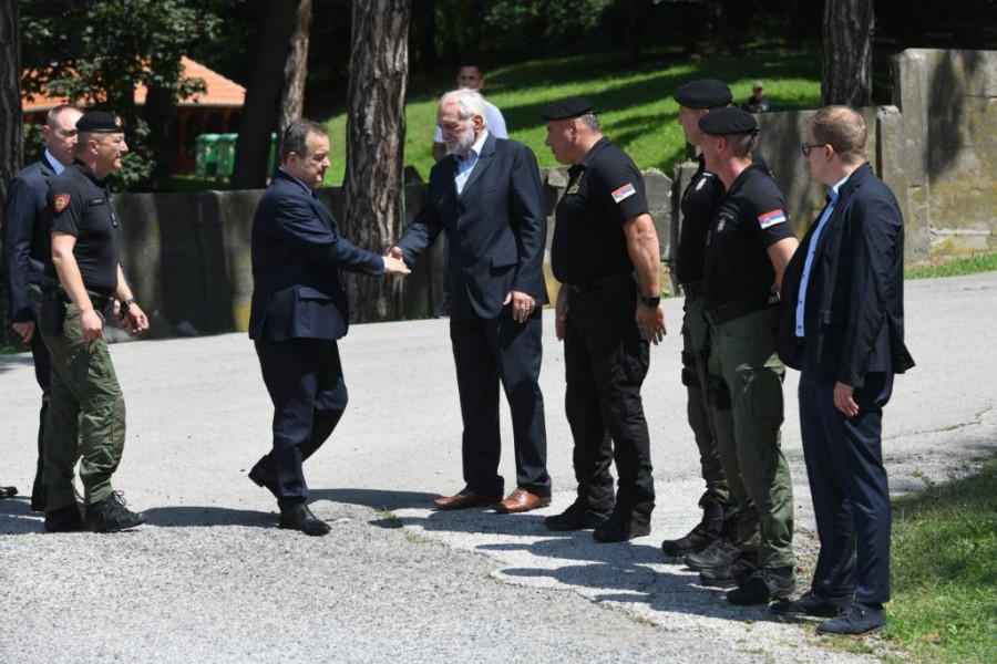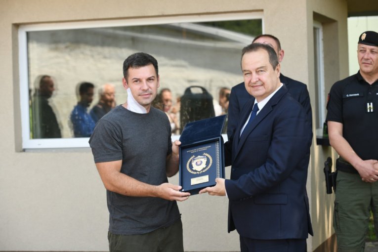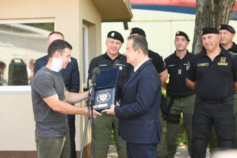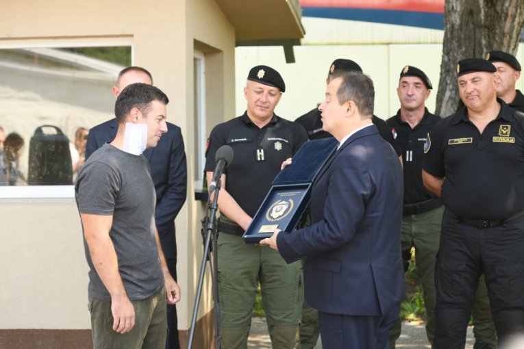 Počasni prijem za žandarma Miloša Jevremovića održava se u zgradi Odreda Žandarmerije u Beogradu od 11.30, a Jevremovića je dočekao Ivica Dačić, ministar policije.