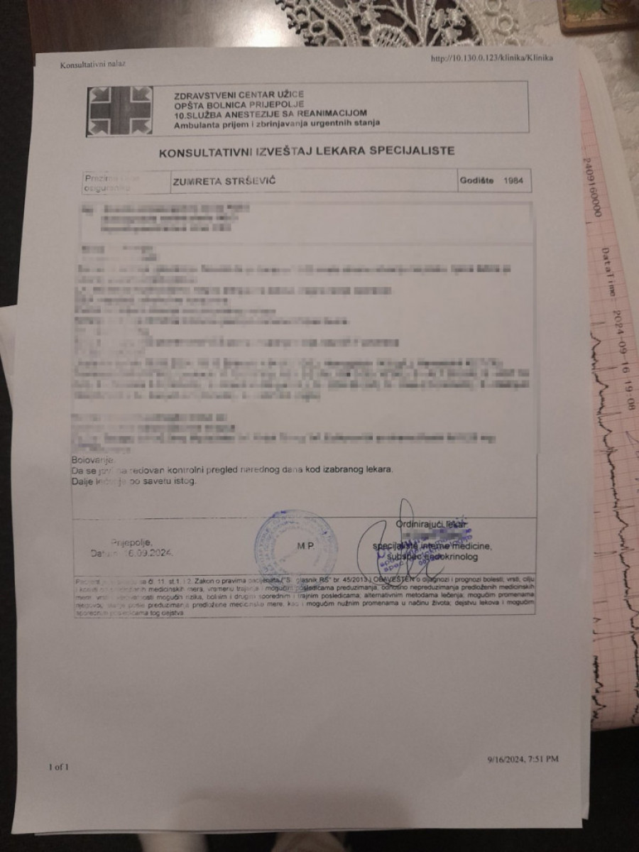- Na kraju tih uvreda, ista mi se unela u lice i svojim čelom udarila u moje - rekla je u policiji pretučena radnica i istakla da joj je posle toga pozlilo i da je morala da se obrati lekarima čiji izveštaj takođe možete videti u okviru teksta.