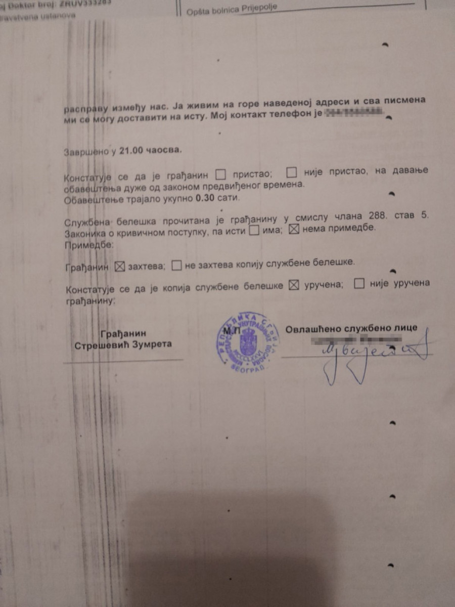Z.S. nam je rekla pošto su je dala izjavu u policiji da su je lekari jedva otpustili iz bolnice.