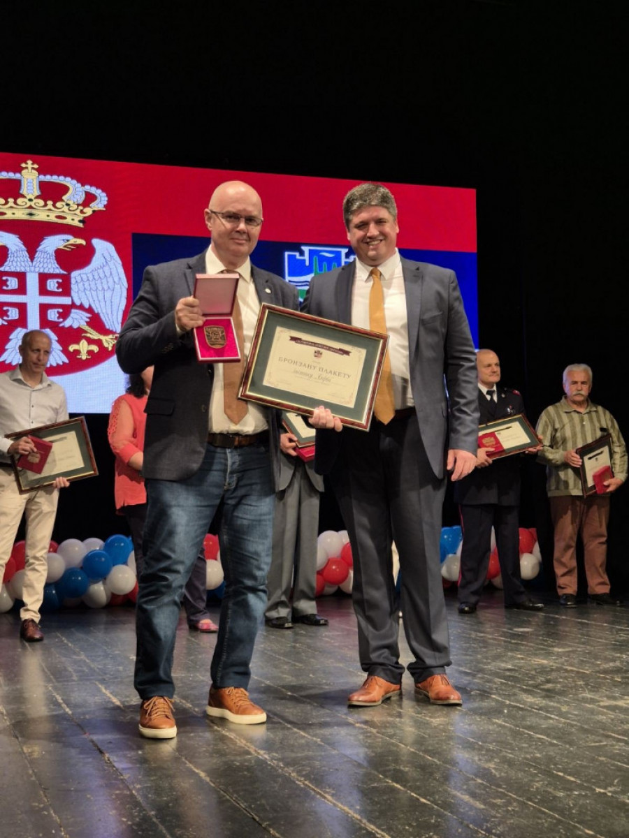 Zlatne, srebrne i bronzane plakete dobili su lekari specijalisti, sportski radnici, likovni umetnici, sportisti, profesori, a dobitnik zlatne medalje je i proslavljeni atletičar i paraolimpijac Željko Dimitrijević.