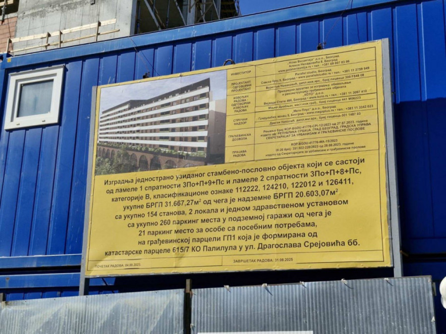 Naziv projekta je "Palata Vizantija", a sudeći po informacijama koje se nalaze na sajtu ove firme, u procesu izgradnje, zbog kog je i zatvorena ulica Dragoslava Srejovića je zidanje stambenih objekata.