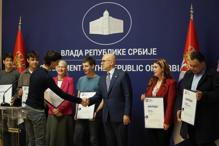Predsednik Vlade Srbije Miloš Vučević priredio je danas prijem za učenike nagrađene na svetskim i evropskim takmičenjima i uručio im priznanja za ostvarene rezultate.