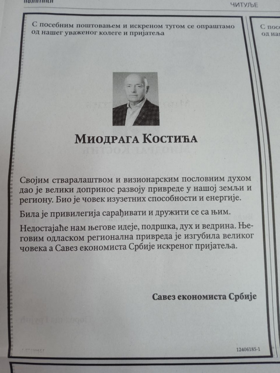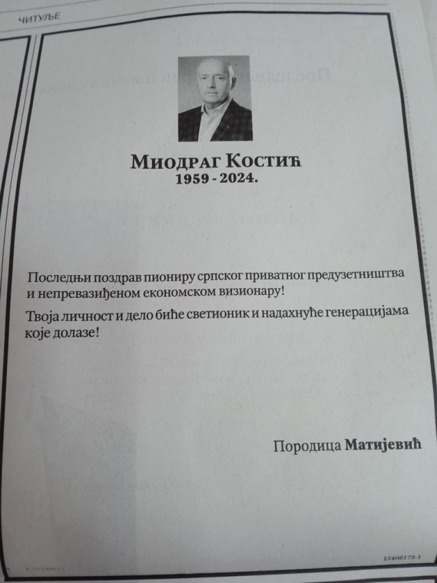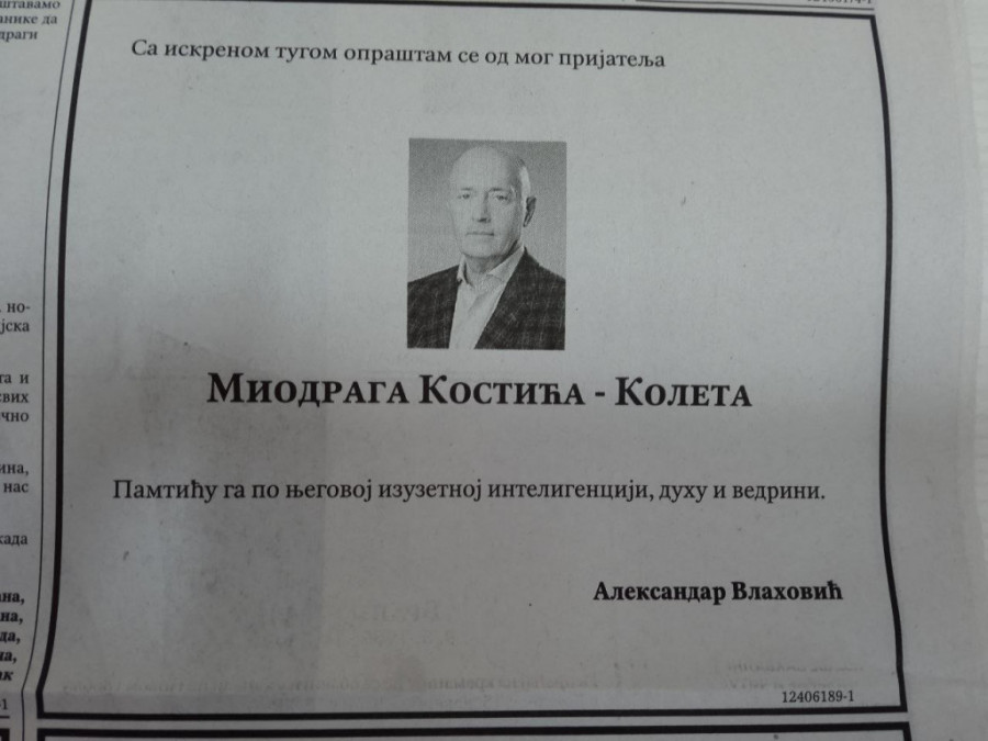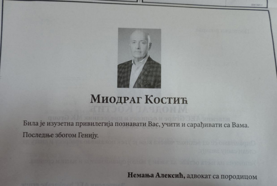 Najpotresniju čitulju objavila je Kostićeva porodica: