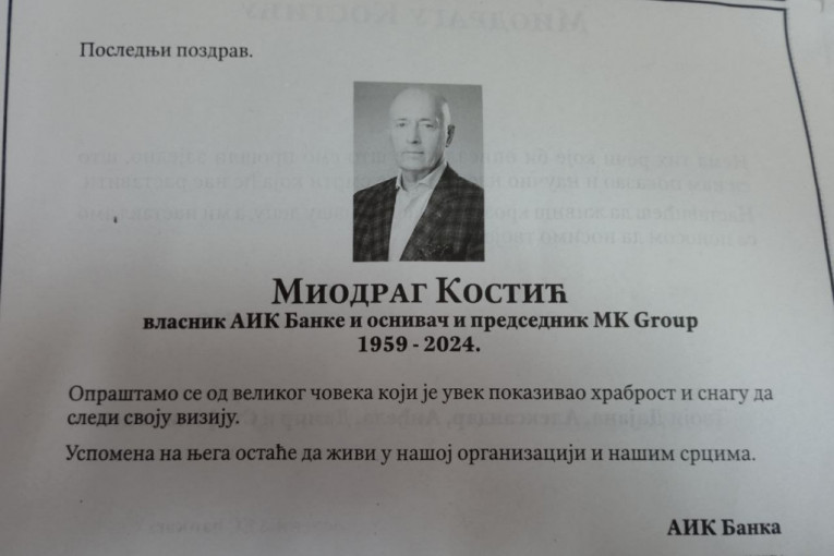 I AIK banka, čiji je Kostić bio osnivač i vlasnik, oprostila se od njega: