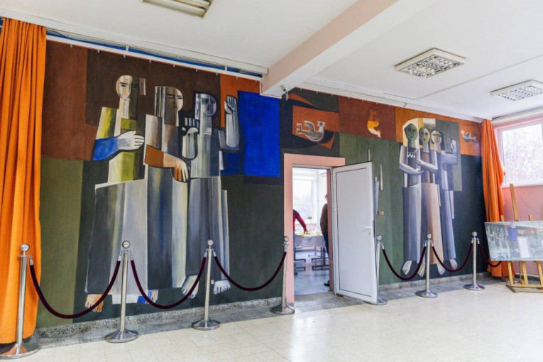 Restauriranu sliku svečano su otkrili gradonačelnik Kruševca Ivan Manojlović i direktor škole Slađan Jevtić.