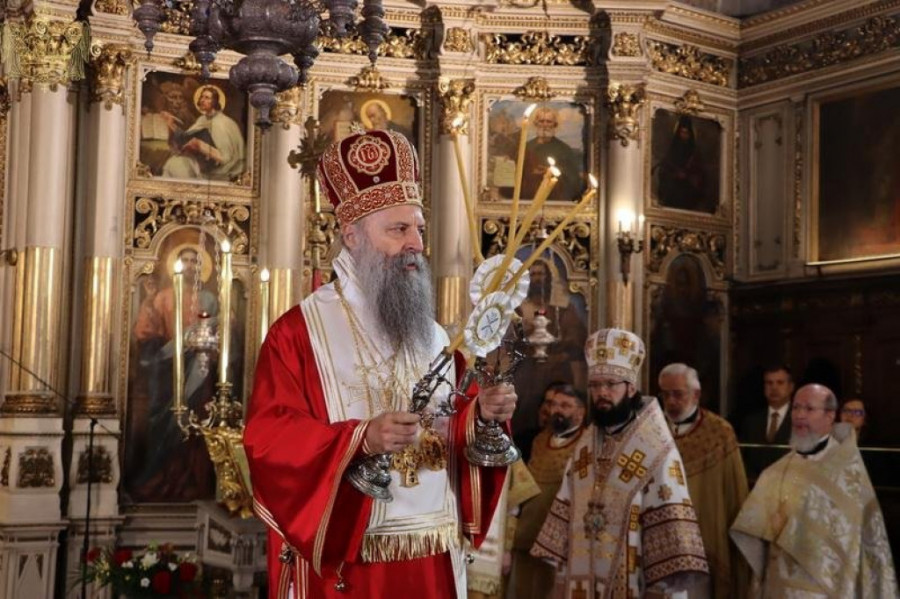 U saopštenju SPC piše da je patrijarh to uradio po završetku liturgije povodom praznika obnovljenja hrama svetog Georgija, slave Grada Novog Sada.