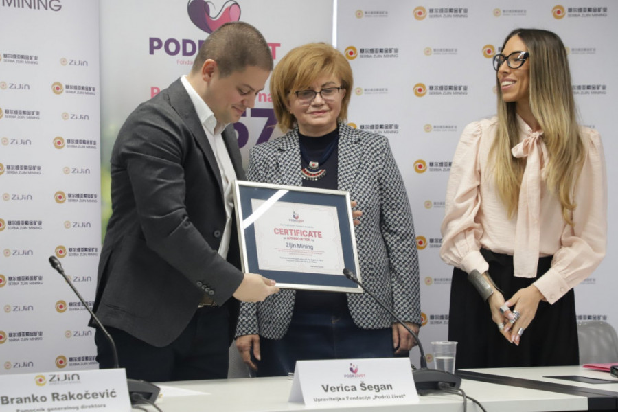 Rudarska kompanija Serbia Ciđin majning pokazala je još jednom svoje veliko srce i humanost. Predstavnici ovog privrednog giganta Jang Juankun, zamenik generalnog direktora kompanije i Branko Rakočević. pomoćnik generalnog direktora i direktor pravne službe potpisali su ugovor o donaciji sa Fondacijom "Podrži život", ispred koje su bile Verica Šegan, upraviteljka ove humanitarne organizacije i Katarina Danojlić. Donacija od 120.000 dolara biće namenjena obolelim mališanima od teških bolesti.