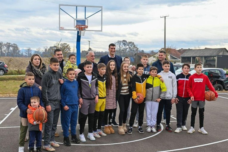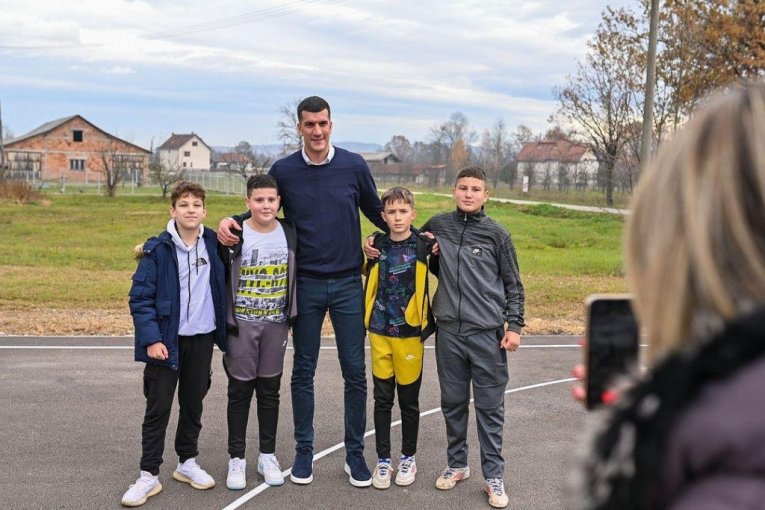On je posetio i selo Kukići, gde je otvoren novi košarkaški teren za mališane iz ovog kraja.