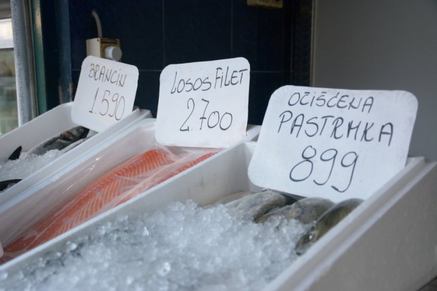 Cene ribe na Bajlonijevoj pijaci kreću se od 569 dinara koliko je potrebno izdvojiti za skušu do 2.940 dinara koliko su fileti orade i brancina. Fileti smuđa koštaju 2.450 dinara po kilogramu, a fileti pastrmke su 2.440 dinara.