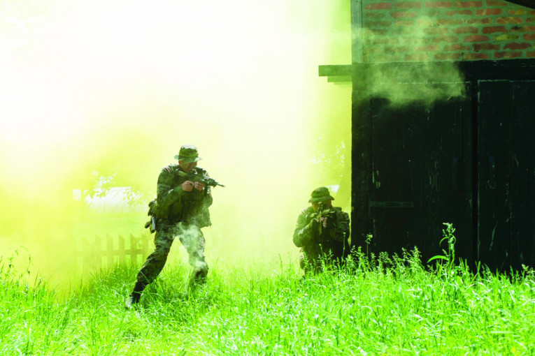 Iza borbe prsa u prsa, sledi uvežbavanje dejstava izviđačko-diverzantskih jedinica u seoskom ambijentu u slučaju terorističkog napada. Nova puška za mene, drugi prsluk, rukavice i kapa. Da bih bila manje vidljiva, maskiraju me u maslinastozelenu i braon boju.