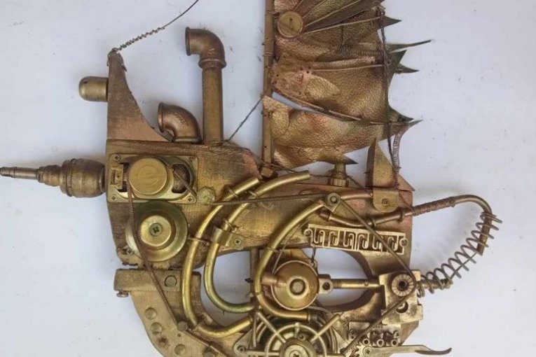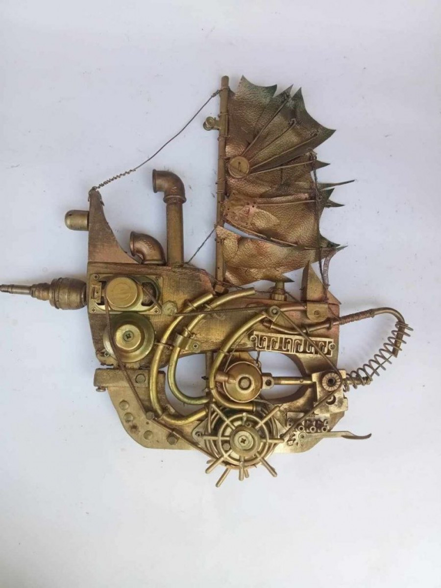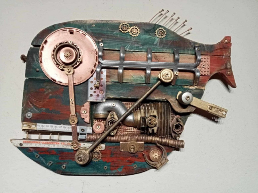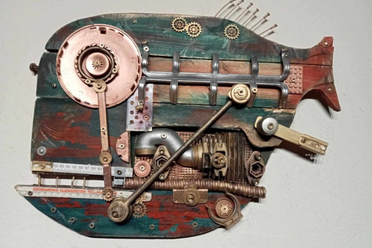 - Nikada pre Srbije nisam radio ovako nešto, a pre dve godine sam počeo da pravim svoja čudna bića. Slučajno. Stari vlasnik kuće ostavio je radionicu i štalu, bilo je dosta polomljenog alata, rezervnih delova, šest starih televizora(!), na primer. U kući je bilo dosta starog nameštaja, kupili smo novi, ali šta da radimo sa starim? I došla je ideja da se ovi delovi koriste i pričvrste na drvenu podlogu. Počeo sam da sečem siluete riba i brodova i šrafim te detalje prema svojoj mašti. Nisam pretraživao internet i nisam pravio kopije drugih umetnika, a tek godinu dana kasnije sam saznao da je ovo asemblaž stil, tj. sklapanje umetničkog predmeta od različitih materijala. Imam i neka svoja stvorenja sa elementima pank stila – stimpank, dizelpank i drugi. Komšije i prijatelji davali su mi polomljene predmete, stari nameštaj, a skupljao sam ga i sa smetlišta na obali Drine i u šumi. Tamo ima mnogo tako "dobrih" predmeta, ali ovo je pravi problem sa divljim deponijama smeća - isrpričao nam je o svojim počecima.