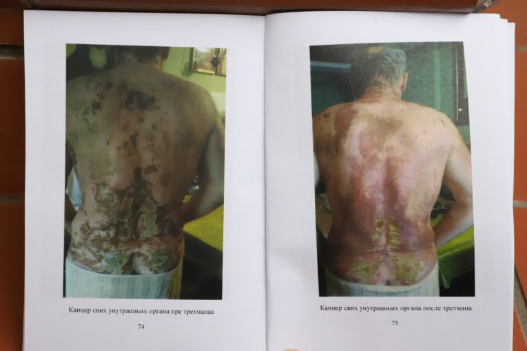Na njima su se mogli videti polunagi muškarci koji u redovima čekaju na "terapiju", a na snimcima koji su kružili Internetom moglo se videti i kako ih "doktor" maže i prska tečnošću sa nekim biljkama.