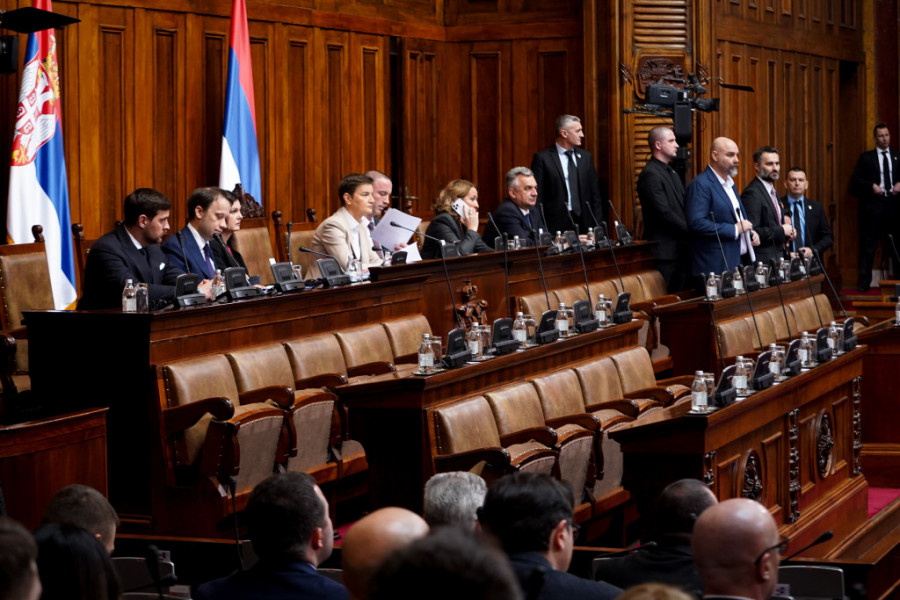 Predloženo je da se raspravlja i o razrešenju predsednice parlamenta na zahtev opozicionih poslanika, a kada se bude završila kompletna rasprava, očekuje se da se konstatuje ostavka premijera Miloša Vučevića.