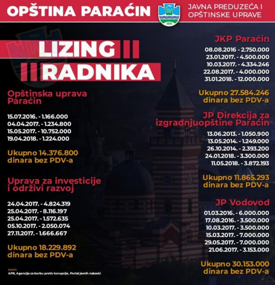 Predsednik opštine Paraćin Saša Paunović je samo pre nekoliko meseci zaboravio da prilikom svoje kuknjave na televiziji, kada je javno kritikovao premijerku Srbije Anu Brnabić i predsednika Srbije Aleksandra Vučića da zbog njihovih mera nema ko da radi u ovoj opštini, zaboravio da spomene da su u Paraćinu smislili način da zaobiđu zabranu zapošljavanja i da putem lizinga iznajmljuju radnike.