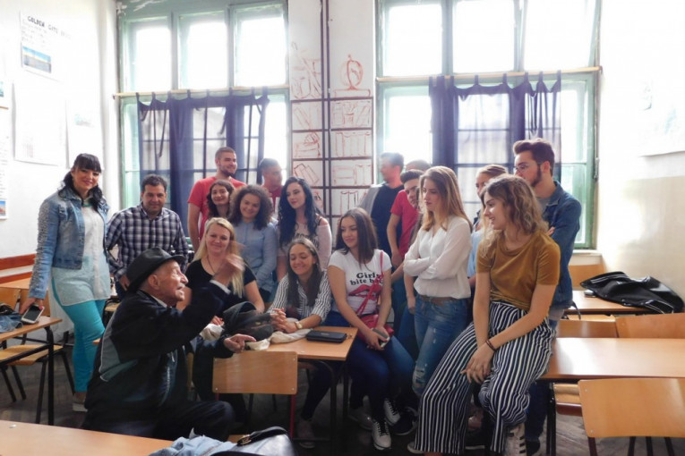 Još uvek vitalan starac sam je došao do Gimnazije i tamo se srdačno pozdravio sa svima. Ipak, najlepši mu je bio susret sa sadašnjim učenicima.