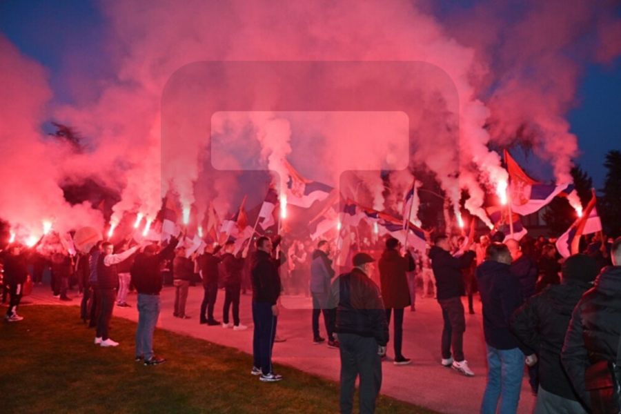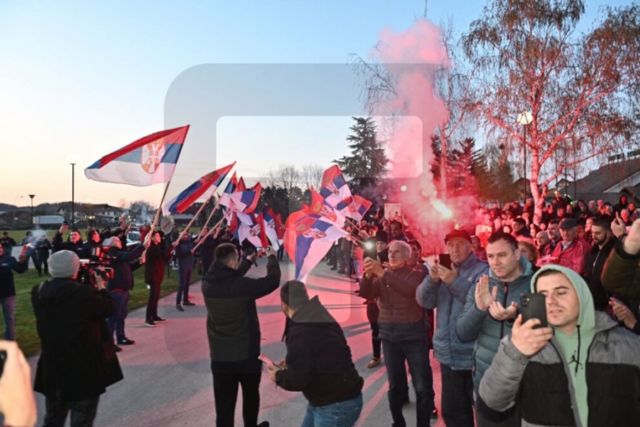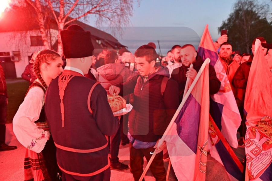 Dočekali su ih trubači, a onda se zaorilo "Kosovo je srce Srbije". Bakljada je samo upotpunila kompletnu emotivnu sliku, dok su se vijorile srpske trobojke.