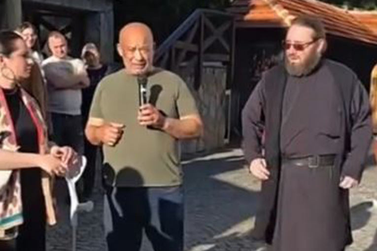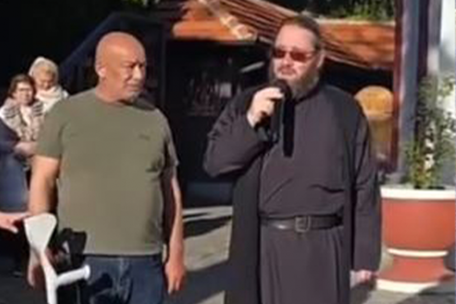 Starešina manastira Dimitrije Plećević, pošto je popričao s Grbićem, obratio se vernicima okupljenim u dvorištu Manastira Tumane na Veliki petak: