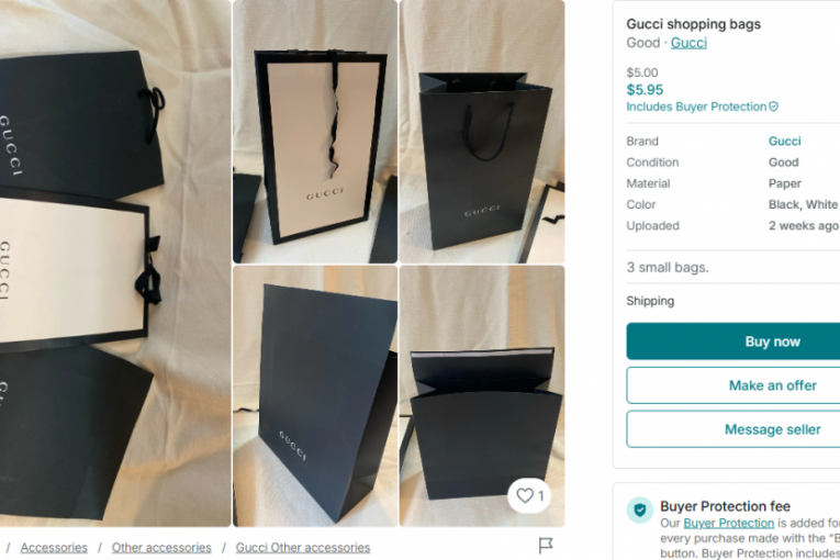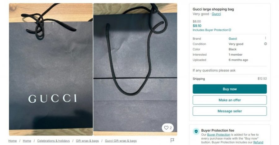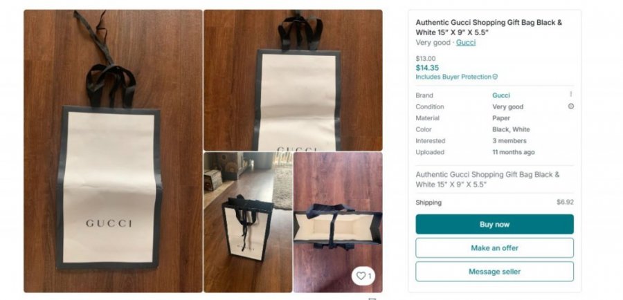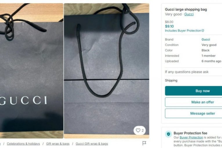 Tako smo na sajtu "Vinted" pronašli nekoliko prodavaca koji nude kese popularnog brenda "Guči" za od 5 do 13 dolara, u zavisnosti od veličine i stanja.