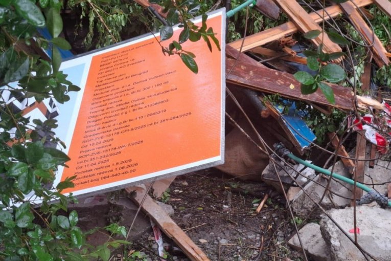 Na našu konstataciju da su, umesto table sa imenom investitora, izvođača i ostalog, koja je završila u gomili šuta, na ogradu gradilišta okačili najobičniji papir, odgovorili su nam da je prijava na vidnom mestu, očigledno zaključujući da je i to sasvim dovoljno.