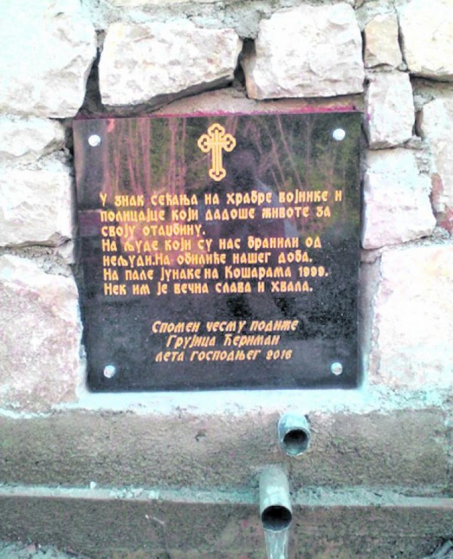 - Tako sam došao na ideju da na tom mestu podignem česmu. Patriota sam i smatram da ti momci koji su stradali na Košarama zaslužuju da im se na svaki, pa i ovaj, način oda poštovanje i zahvalnost za sve što su uradili za svoju zemlju. Hteo sam da uradim nešto lepo. Zato je ta česma javna. Dugačka je šest metara, a visoka dva - priča ovaj Ivanjčanin.