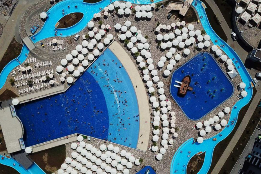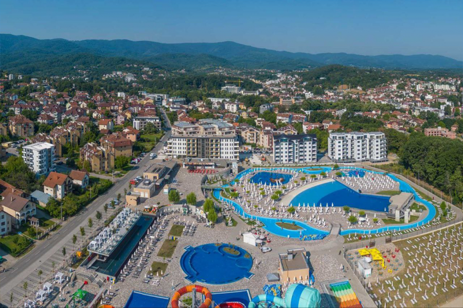 Bogata banjska ponuda je dodatno proširena 2022. kada je otvoren akvapark „Raj", mesto za uživanje u vodenim atrakcijama za sve generacije. Na površini od 3,5 ha osmišljena je zabava za čak 4.000 posetilaca. Nezaboravna pustolovina za najmlade je na gusarskom brodu, platformi sa prskalicama i u društvu zabavnih animatora, dok je vožnja sporom rekom dugom 460 m pravo uživanje za sve posetioce. Prava avantura je bazen sa talasima od čak 2000 m˛ koji posetiocima daje osećaj letovanja na nekoj od egzotičnih svetskih destinacija. Tu su i hidromasažni bazen, tobogani, od kojih je najviši čak 30 metara, kao i restoran u sastavu akva parka.