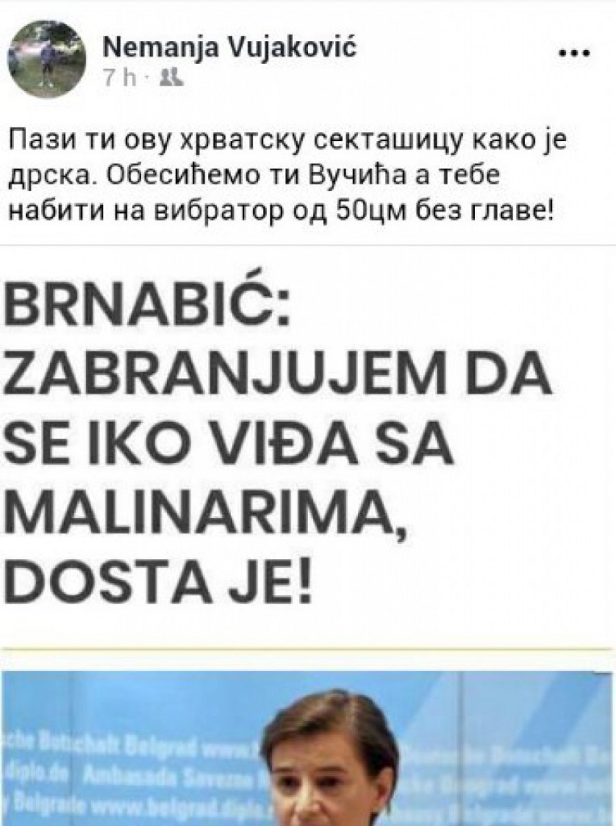 Dok se naša premijerka Ana Brnabić svim silama trudi da reši problem malinara i nađe najbolje rešenje za sve, na društvenim mrežama pljušte strašne pretnje i uvrede na njen i na račun predsednika Aleksandra Vučića.