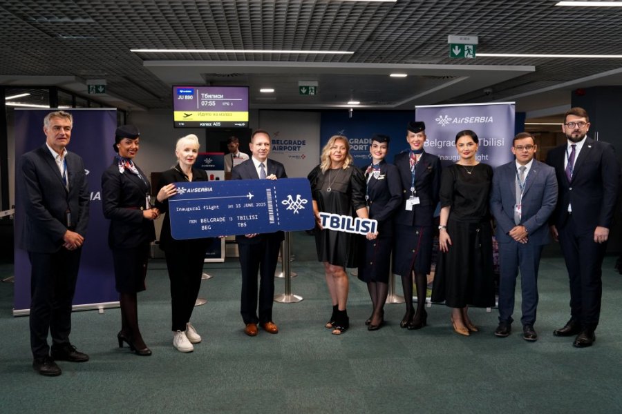 Prvi avion Er Srbije sa beogradsog aerodroma "Nikola Tesla" ka glavnom gradu Gruzije poleteo je danas u 7.55 sati, a tim povodom i na beogradoskom aerodromu bila je organizovana svečanost na kojoj su prisustvovali ministarka građevinarstva Aleksandra Sofronijević, predstavnici ambasade Gruzije i menadžment Er Srbije.