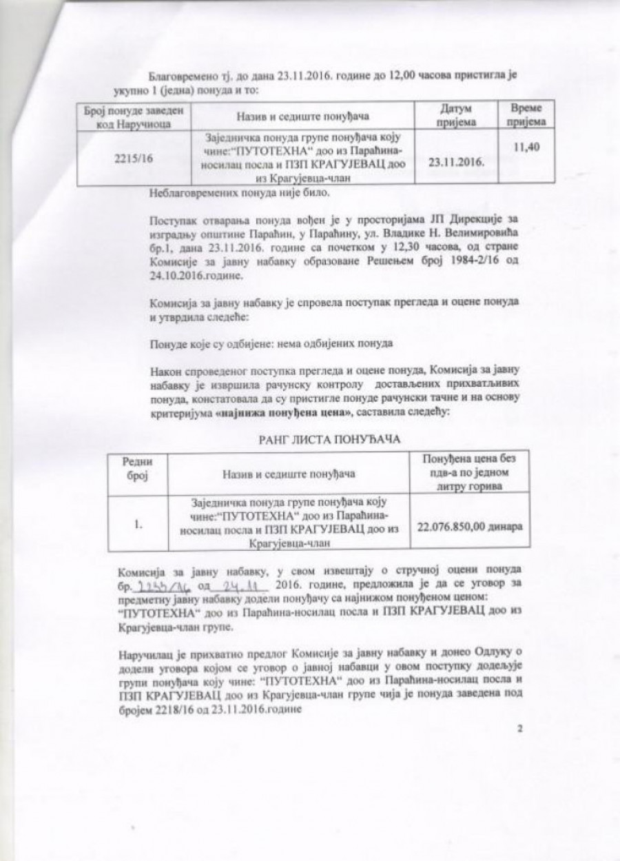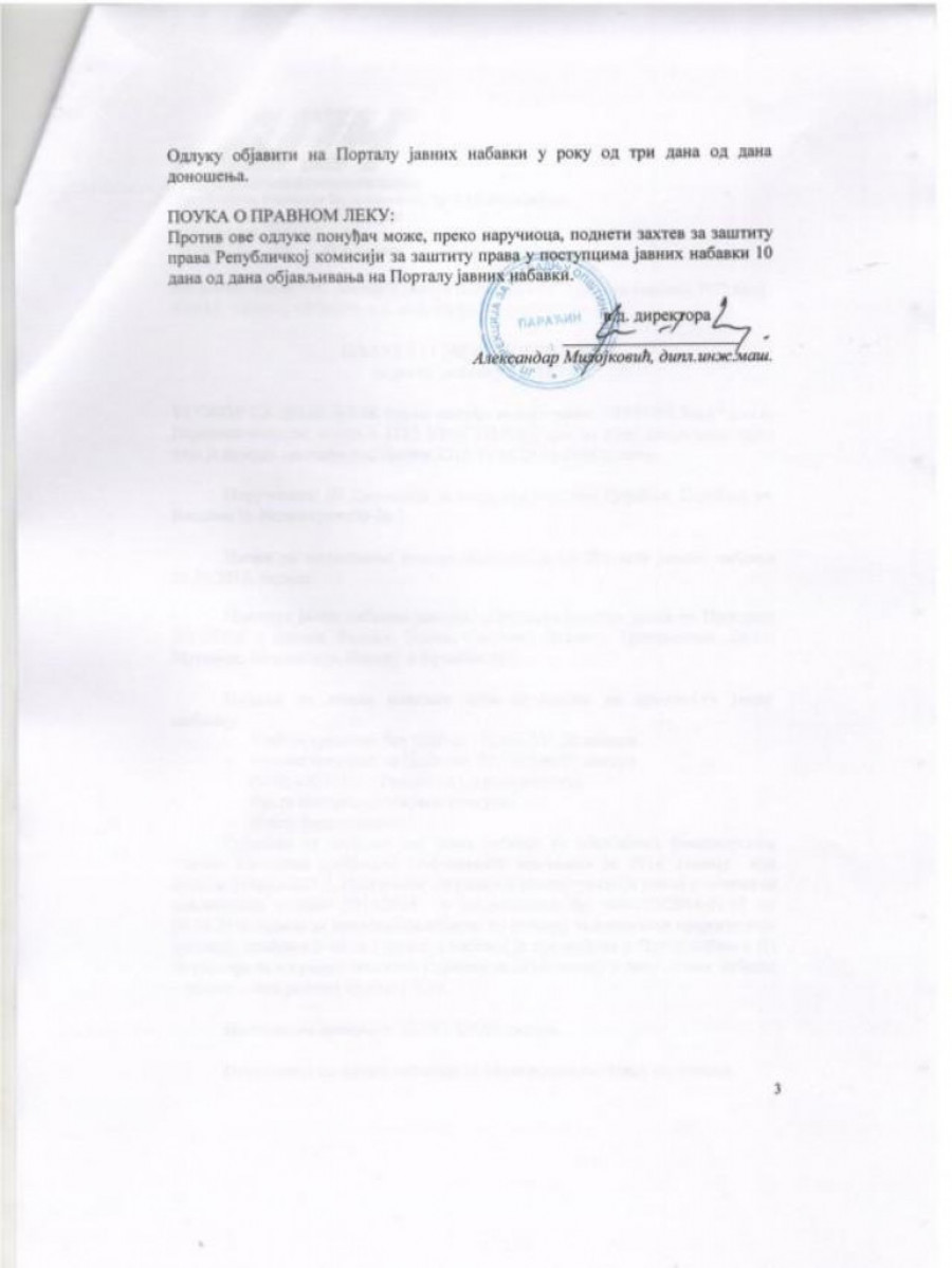 Na priloženim slikama možeti videti odluku o dodeli ugovora: