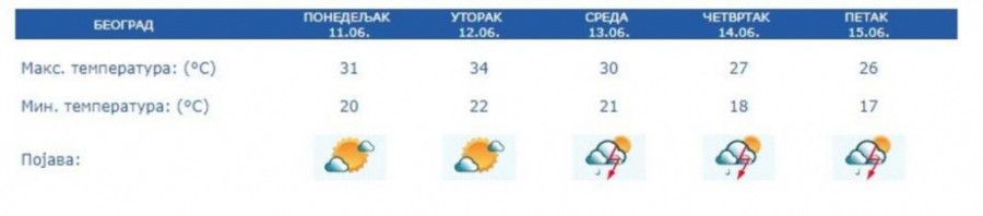 Ista je prognoza i za petak i subotu - temperature do preko 30 stepeni.